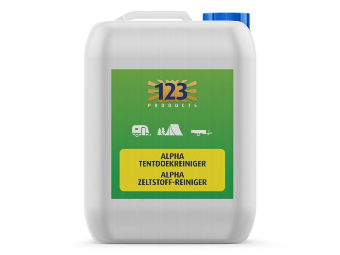 Il detergente per tende Alpha della 123 Products è adatto alla pulizia di qualsiasi tipo di telo per tenda. Prima dell’uso occorre bagnare completamente il telo. Dopodiché si spruzza il detergente direttamente sul telo senza diluirlo, si strofina con una spazzola morbida fino alla formazione di schiuma, si lascia agire per qualche minuto e si sciacqua abbondantemente con il tubo da giardino. Prima di poter procedere con il trattamento impermeabilizzante bisogna lasciar asciugare il telo per almeno 36 ore.