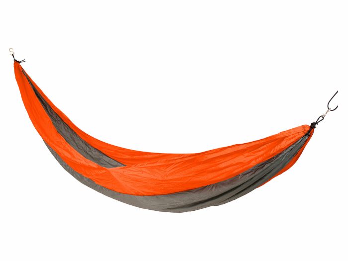 Questa leggerissima amaca da viaggio - Orange modello Hover di Bo-Camp è realizzata con la stoffa per paracaduti.