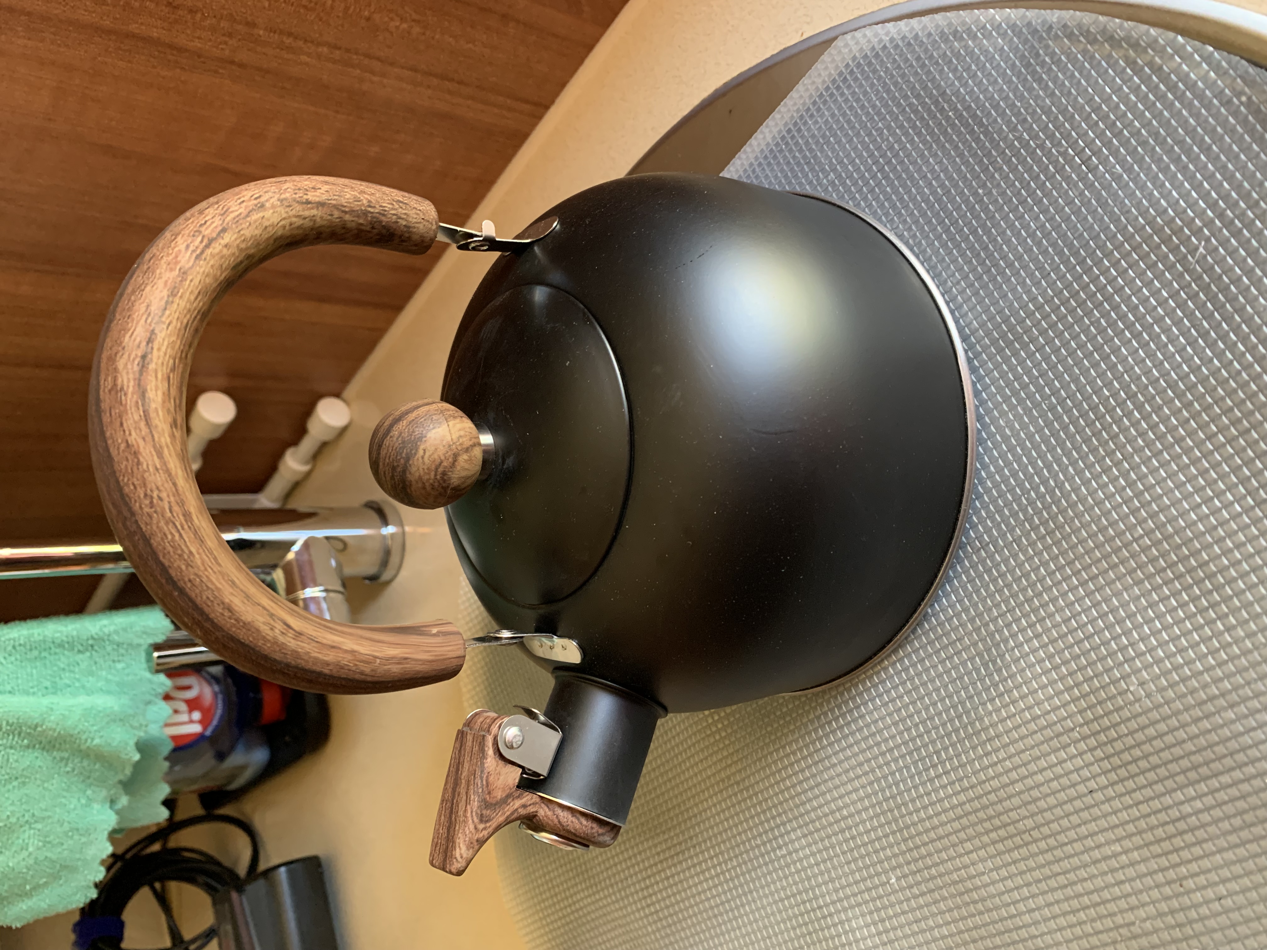 Volete un articolo elegante per far bollire l'acqua su un fornello? Pettygrove di Bo-Camp si inserisce perfettamente in uno stile industriale grazie al colore nero e ai dettagli in legno. Il Pettygrove emette un fischio non appena l'acqua bolle.