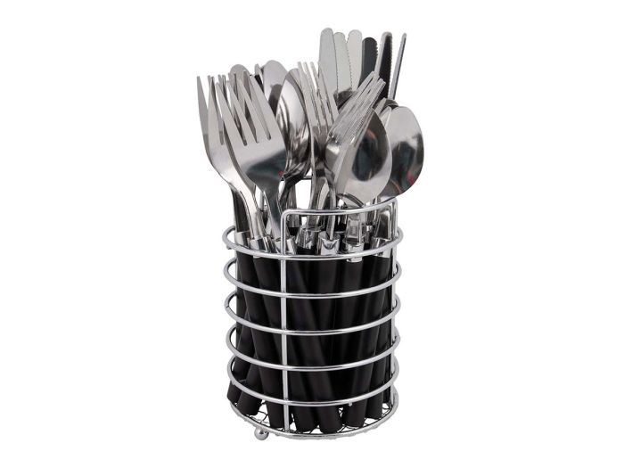 Set di 24 posate con manico in plastica completo di contenitore. Adatto per 6 persone.