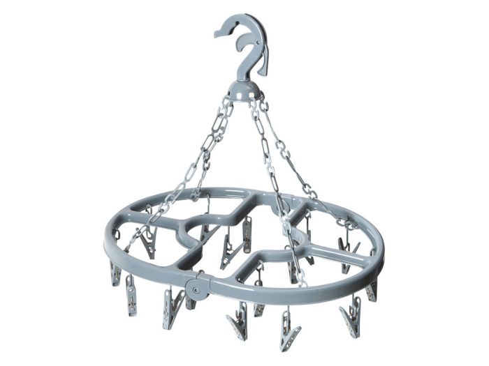 Lo stendibiancheria di tipo carosello della Bo-Camp è dotato di 16 mollette e può essere chiuso facilmente. Il pratico gancio permette di appenderlo ovunque.