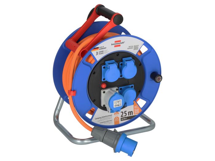 L’avvolgicavo Garant Brennenstuhl CEE con cavo da 25 m è la soluzione ideale per l’uso all’esterno, ad esempio in campeggio. Il robusto cavo arancione RN è resistente agli oli e sopporta temperature estreme fino a -25 °C, risultando perfetto per un utilizzo permanente all’aperto. Grazie al grado di protezione IP44, offre la massima sicurezza anche in caso di umidità.