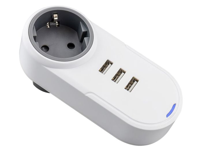 Le 3 porte USB hanno un pratico indicatore LED. La tensione di uscita di ciascuna porta USB è di 5Vdc (1.2A -2.4A). Per proteggere i dispositivi collegati le 3 porte sono dotate di protezione da sovraccarico, sovracorrente e sovratensione.
