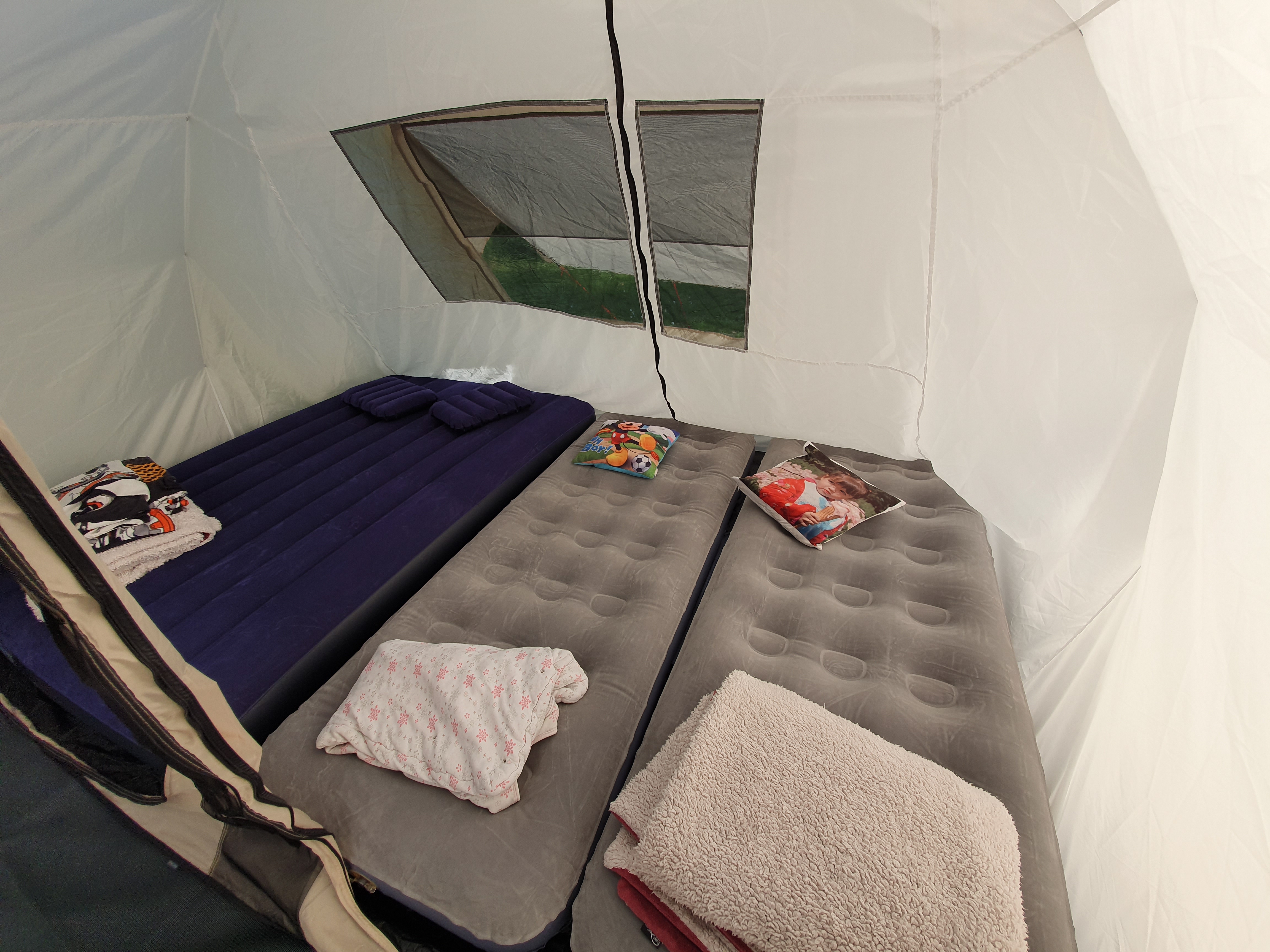 Questa tenda, veranda o tendalino ha una struttura costituita da camere d'aria gonfiabili.