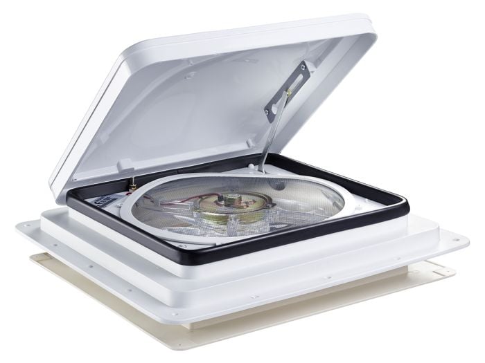 Quest'oblò da tetto della Dometic è dotato di un ventilatore a 10 pale con un diametro di 30,5 cm. Il ventilatore ha 3 posizioni di velocità e flusso d'aria reversibile (dall'interno verso l'esterno o dall'esterno verso l'interno).