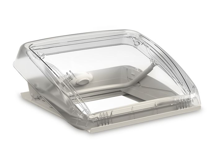 L'oblò tetto Mini Heki Style 43-60 mm della Dometic con ventilazione permanente è compatibile con le aperture standard nel tetto da 400 x 400 mm e assicura un'ottima luminosità. L'angolo di apertura dell'oblò viene determinato dalla posizione della barra. Questo oblò è facile da installare e consente di godere di un ambiente fresco e con un ricambio d'aria ottimale.