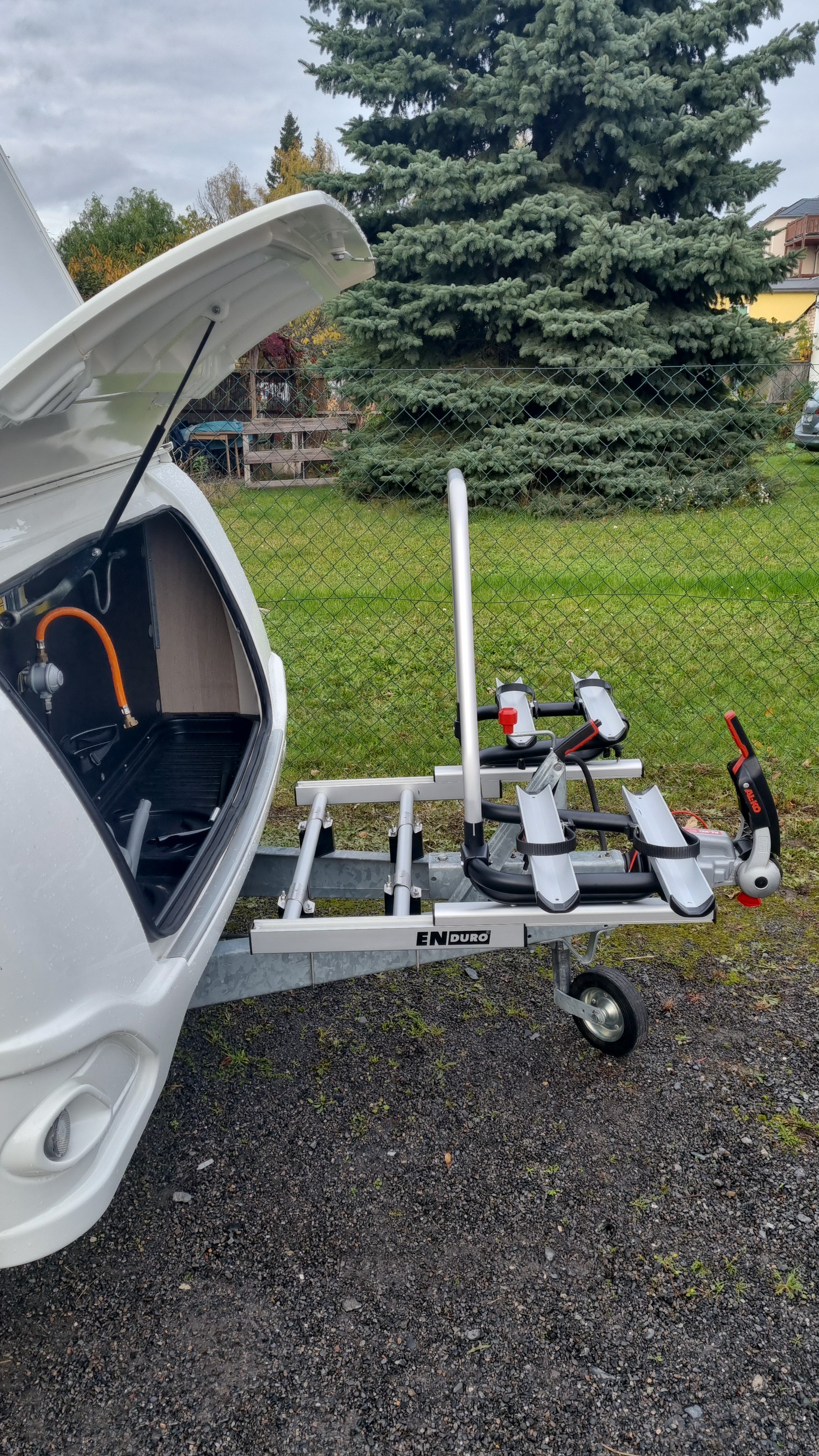 Ti sarà sicuramente capitato: hai appena caricato le biciclette sul portabici e ti accorgi di non avere ancora messo le bombole nel gavone. Una bella seccatura, adesso ti tocca togliere le biciclette per poter aprire il gavone. Con il portabici Enduro BC260 il problema è risolto! Questo portabici è dotato di un esclusivo sistema di scorrimento che permette l'accesso al gavone del caravan anche dopo aver caricato le biciclette.