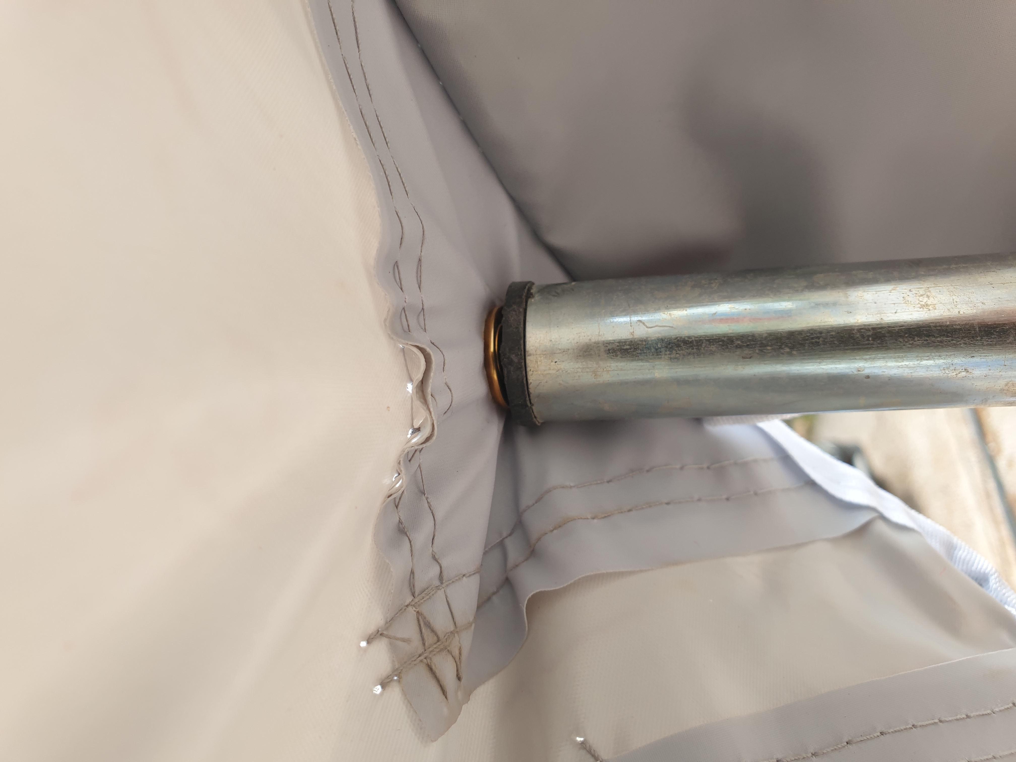 Questa tenda, veranda o tendalino ha una struttura costituita da camere d'aria gonfiabili.