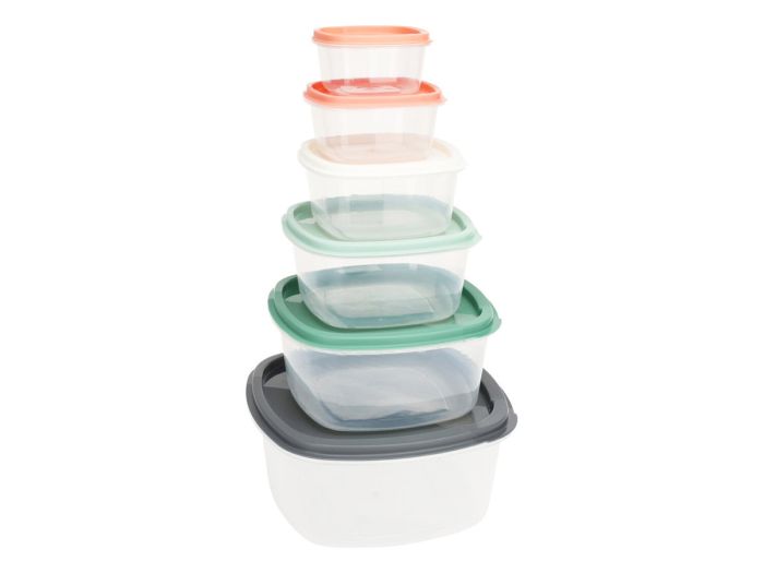 Il set comprende 6 contenitori di diverse dimensioni, così avrai sempre quello giusto. Realizzati in plastica robusta e trasparente, ti permettono di vedere subito il contenuto. I coperchi ermetici sono progettati per mantenere il cibo fresco più a lungo e proteggerlo da aria e umidità.