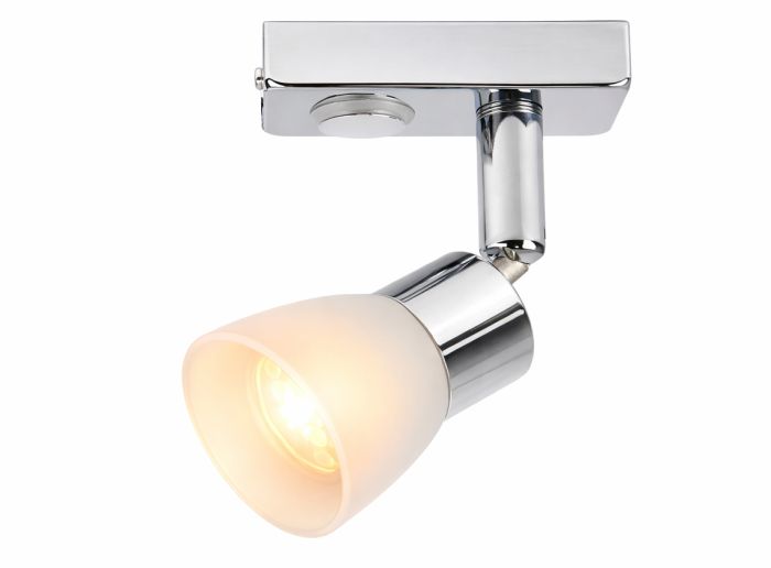 Faretto LED dimmerabile a montaggio superficiale. Dotato di interruttore touch e adatto a qualsiasi ambiente grazie alla finitura cromata.