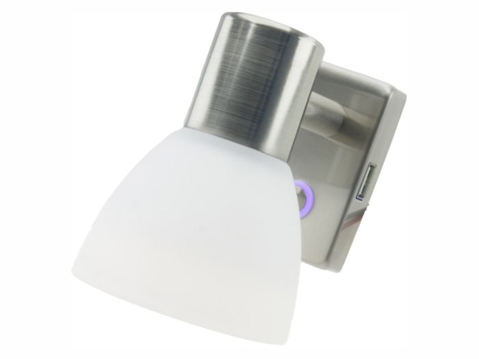 Il faretto ha un design moderno ed elegante ed è dotato di una porta USB che consente anche di ricaricare il telefono o il tablet.