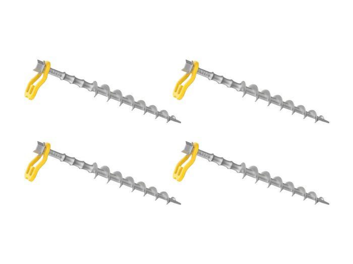I picchetti a vite possono essere avvitati nel terreno a mano, con il trapano o con la chiave a cricchetto inclusa. Sono adatti a terra, argilla ed erba. Grazie alle clip di regolazione gialle incluse, non è necessario avvitare completamente il picchetto nel terreno.