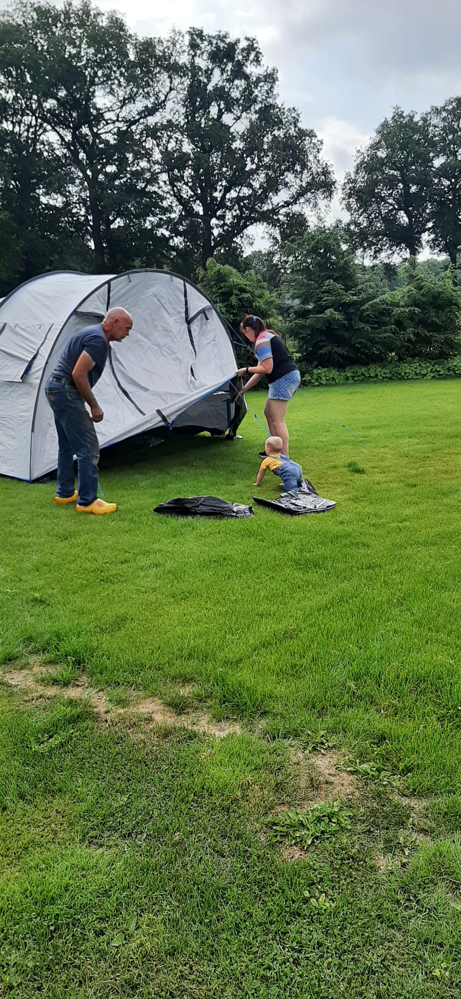 La tenda offre abbastanza spazio per sedersi comodamente all'interno in caso di maltempo.