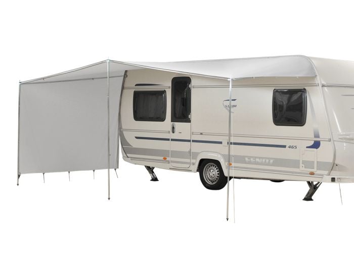 Il tendalino scorrevole Marvella è dotato di una parete laterale fissa e può essere fatto scorrere facilmente da sinistra verso destra nella canalina della roulotte. In questo modo è possibile scegliere da quale lato posizionare la parete laterale. Grazie al suo design semplice e lineare è molto leggero e facile da montare. Queste caratteristiche lo rendono il tendalino ideale per chi fa campeggio itinerante. Il tendalino scorrevole Marvella è realizzato interamente in tessuto Ten Cate All-season di elevata qualità, un tessuto robusto, facile da pulire e che non scolorisce. Il Marvella è anche dotato di un doppio profilo di scorrimento grazie al quale, in combinazione con delle clip SHS acquistabili separatamente, è possibile fissare la struttura del tendalino alla roulotte senza dover praticare dei fori nella sua parete.