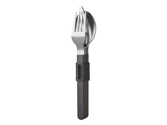 Il set di posate Mepal Silueta Nordic Black da 3 pezzi è un comodo set da campeggio composto da una forchetta, un coltello e un cucchiaio.