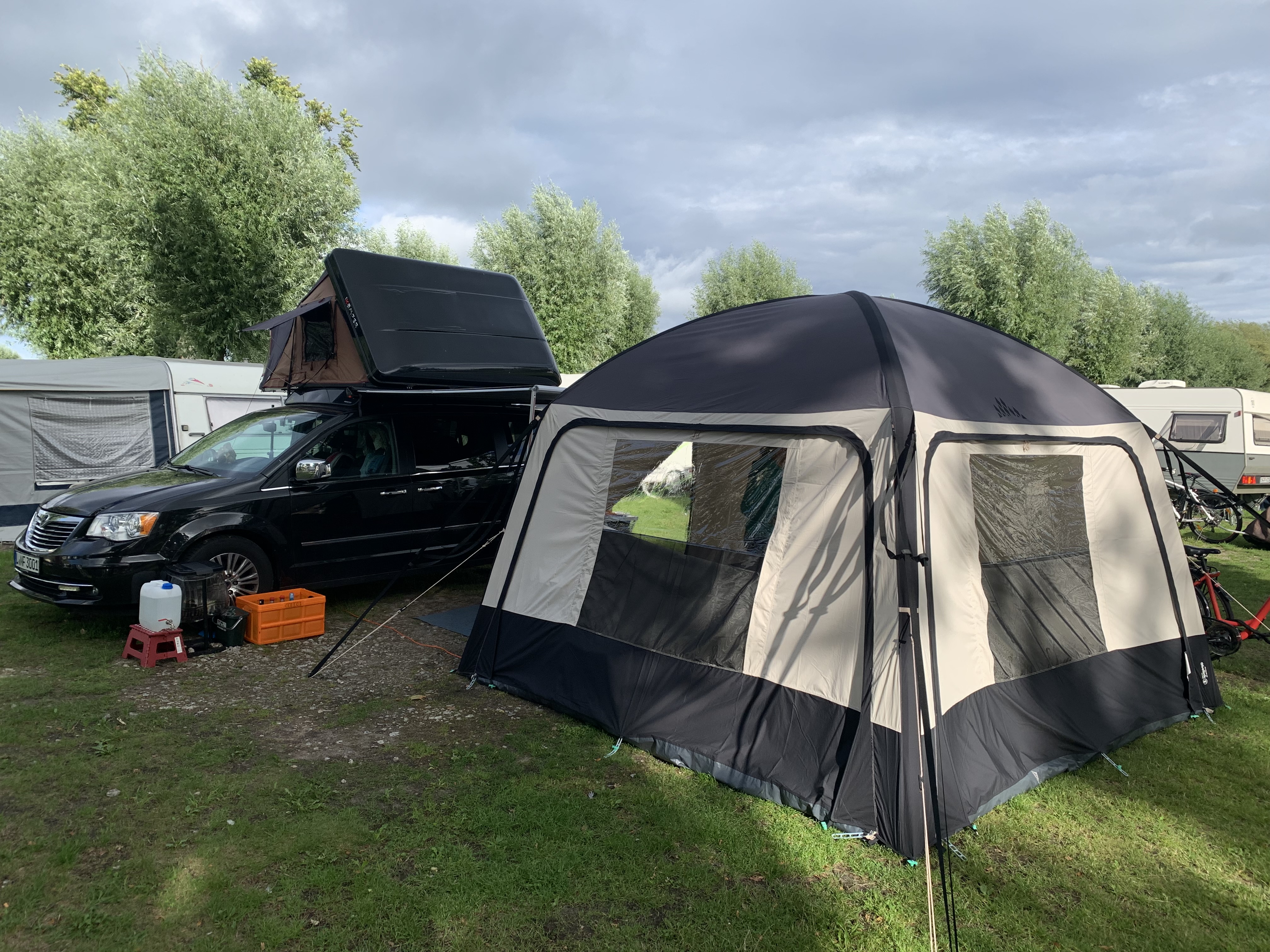 Vuoi chiudere l'Air Shelter 365 TC su tutti i lati? Con le apposite pareti laterali con porta o finestra è possibile! Questa parete laterale è dotata di una finestra con la metà superiore in pellicola trasparente e la metà inferiore in zanzariera. La finestra può essere chiusa completamente dall'interno per mezzo di un oscurante.