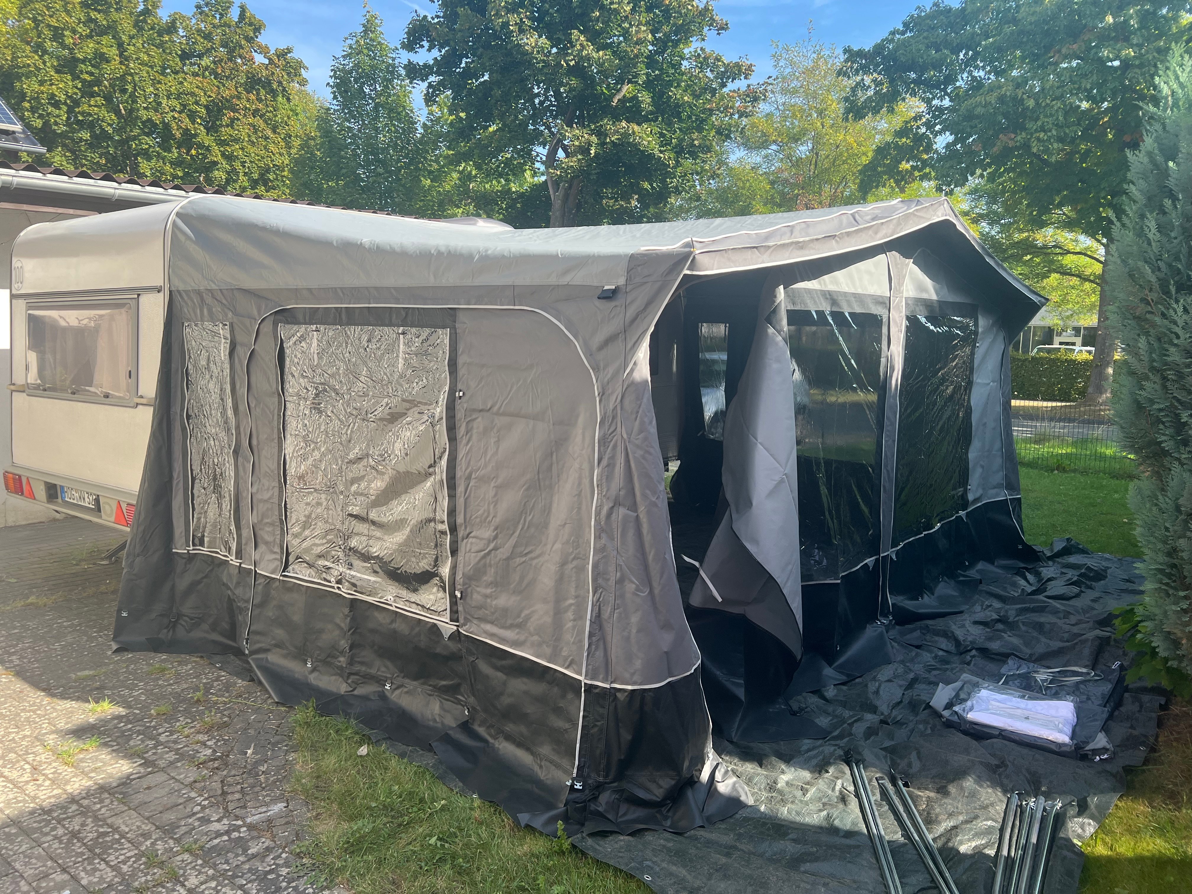 La tenda/veranda offre la possibilità di aggiungere un'estensione acquistabile separatamente per aumentare lo spazio di soggiorno.