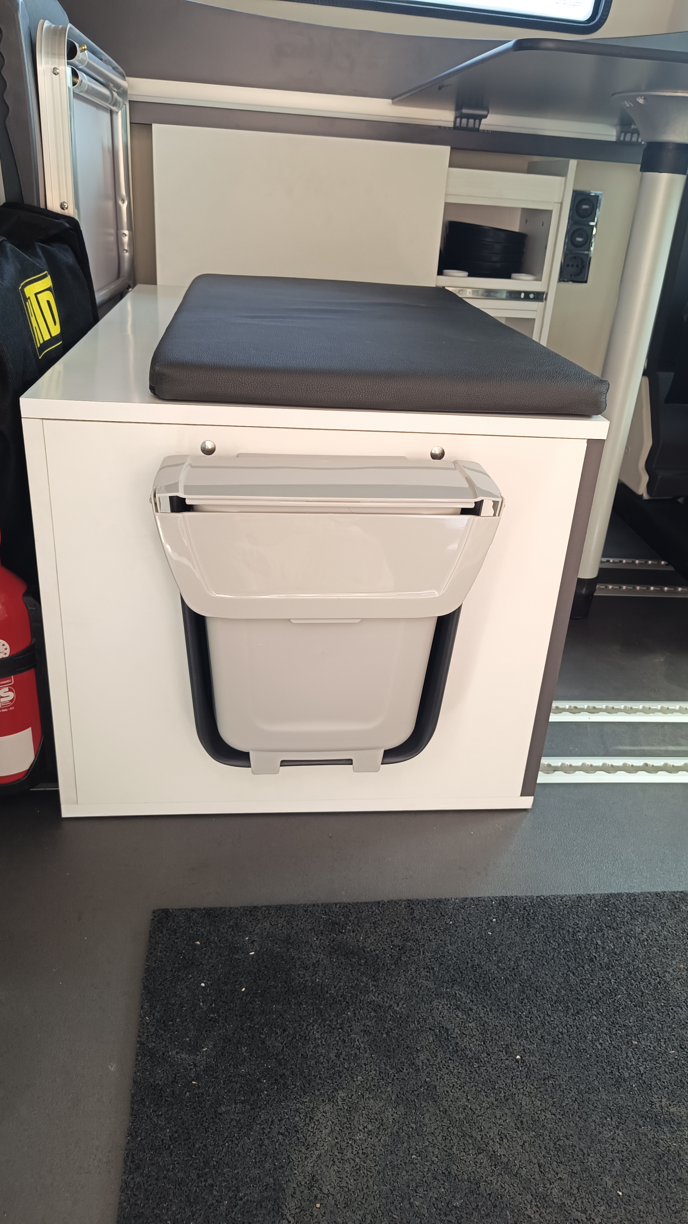 Questa pattumiera è molto pratica nel caravan o camper, ad esempio per raccogliere i rifiuti organici. Può eventualmente essere utilizzata anche come contenitore per riporre strofinacci o altri accessori.
