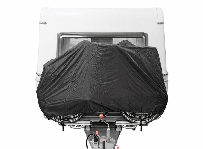 Il copribici per portabici da timone di Obelink permette di coprire due biciclette trasportate sul timone del caravan o del rimorchio.