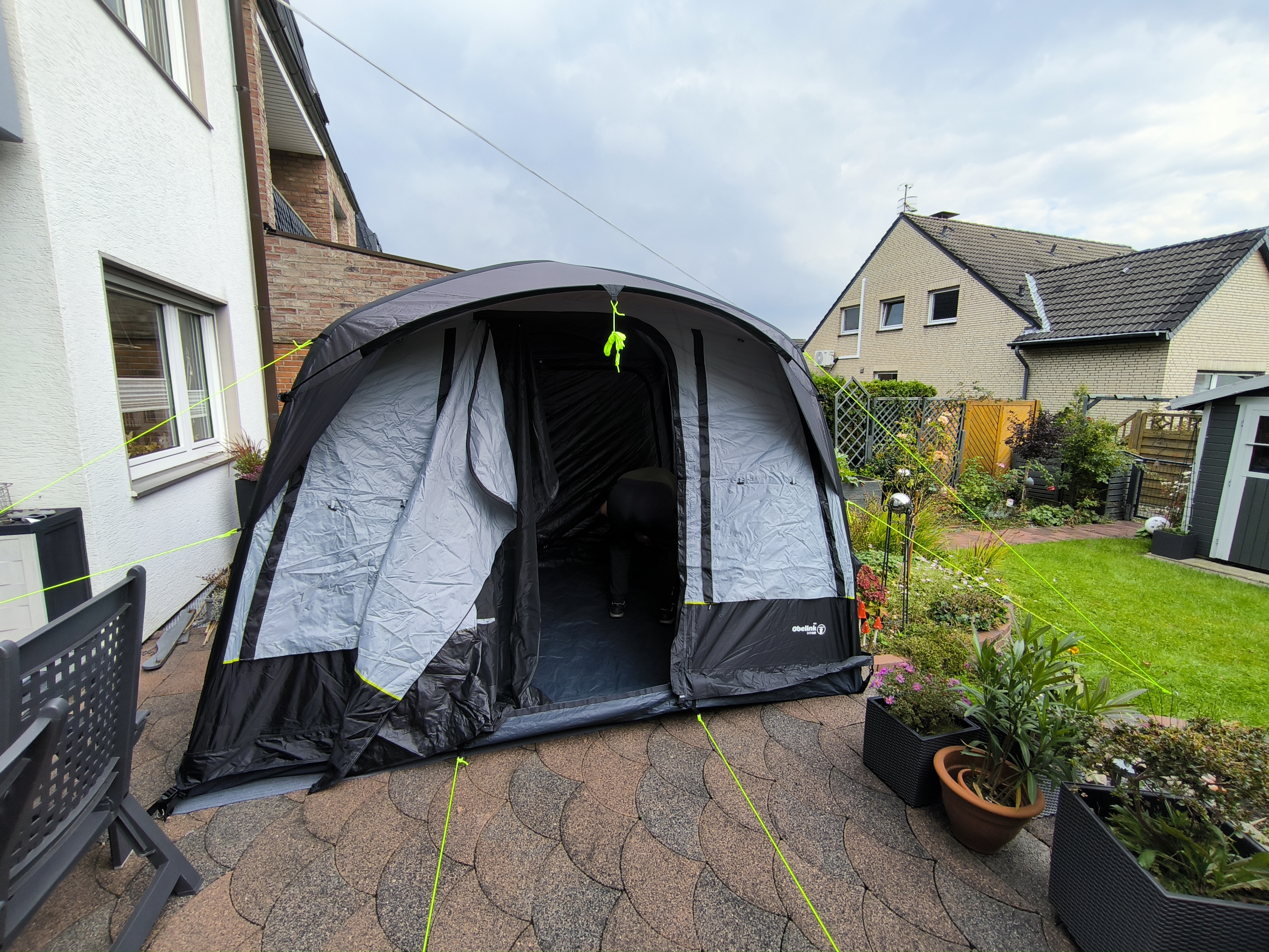 Una tenda/veranda autoportante resta in piedi anche quando non è attaccata al veicolo. Ciò consente di utilizzare il veicolo senza dover smontare la tenda/veranda.