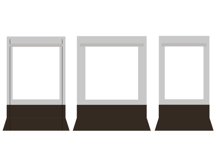 Poiché l'intera parete frontale è composta da tre pannelli separati, è possibile scegliere se posizionare il pannello con la porta a destra, a sinistra o al centro.