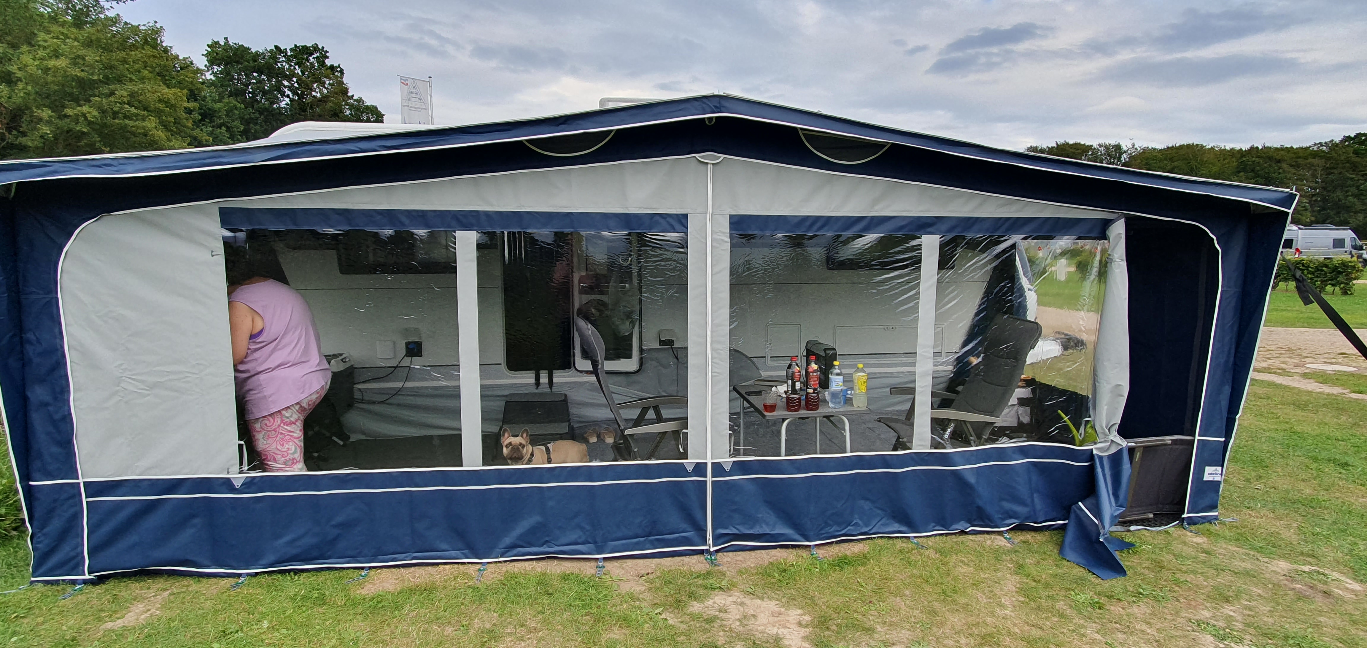 La tenda/veranda offre la possibilità di aggiungere un'estensione acquistabile separatamente per aumentare lo spazio di soggiorno.