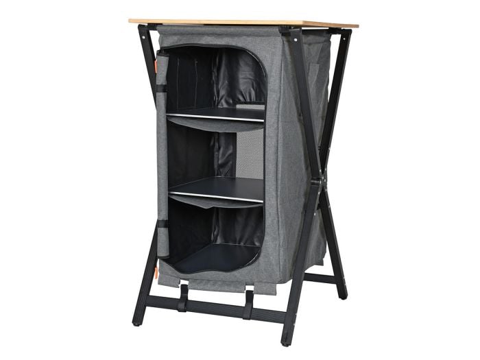 Grazie alla struttura pieghevole e alla borsa da trasporto inclusa, questo armadietto si porta facilmente in campeggio. Con le sue dimensioni di 60 x 57 x 98 cm offre sorprendentemente tanto spazio per riporre gli oggetti senza essere troppo ingombrante.
