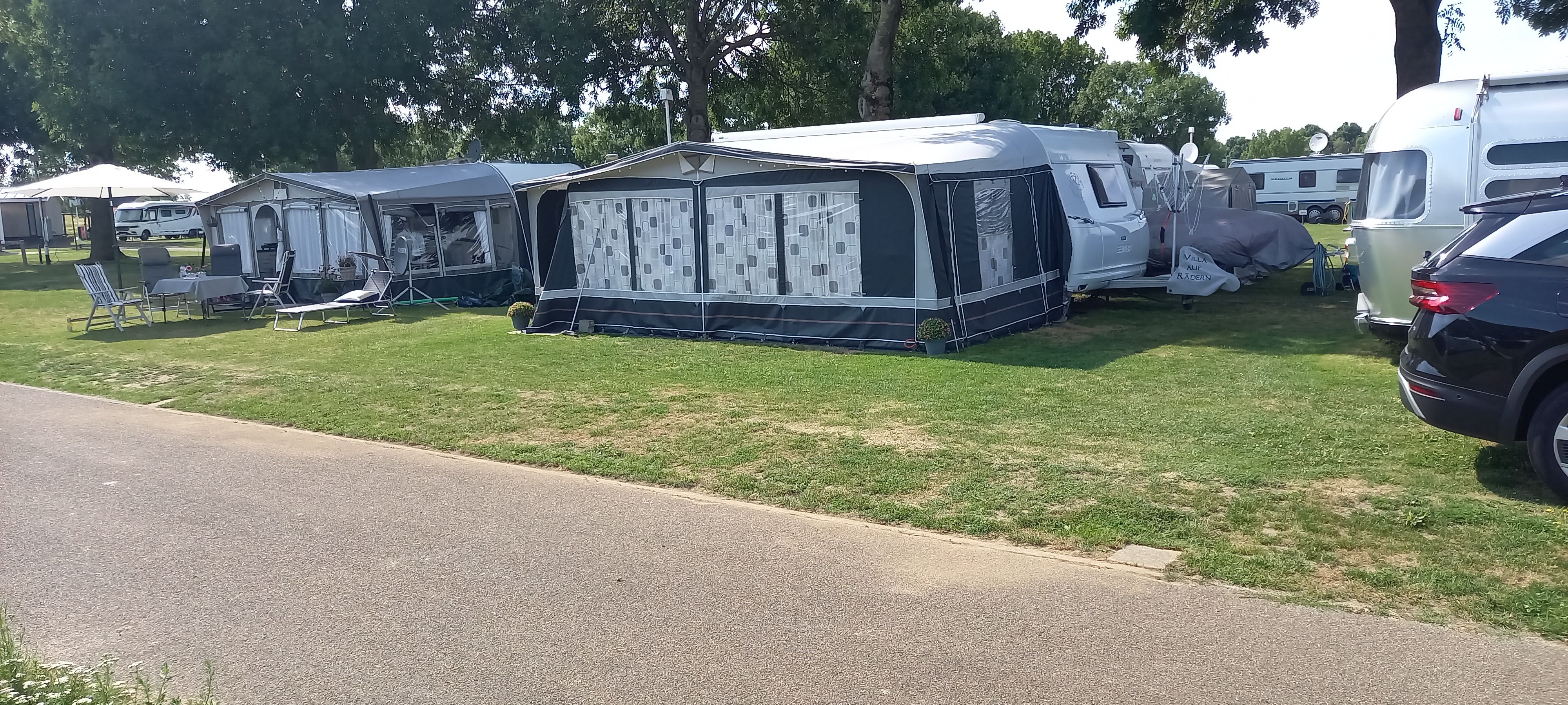 Un caravan aerodinamico è un caravan con la parte anteriore inclinata.