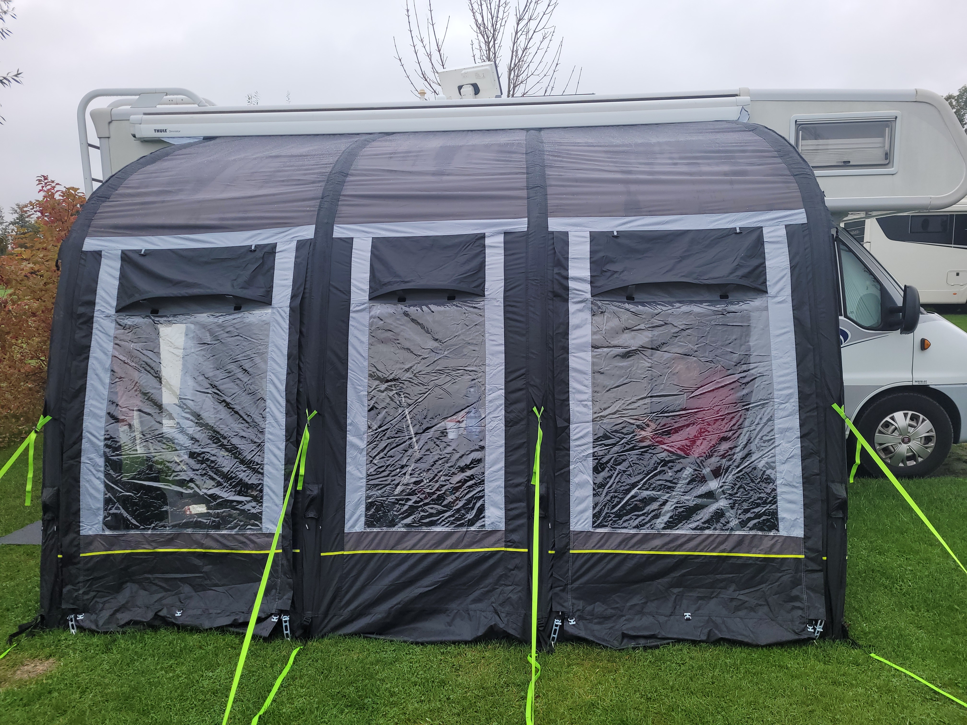 Questa tenda, veranda o tendalino ha una struttura costituita da camere d'aria gonfiabili.