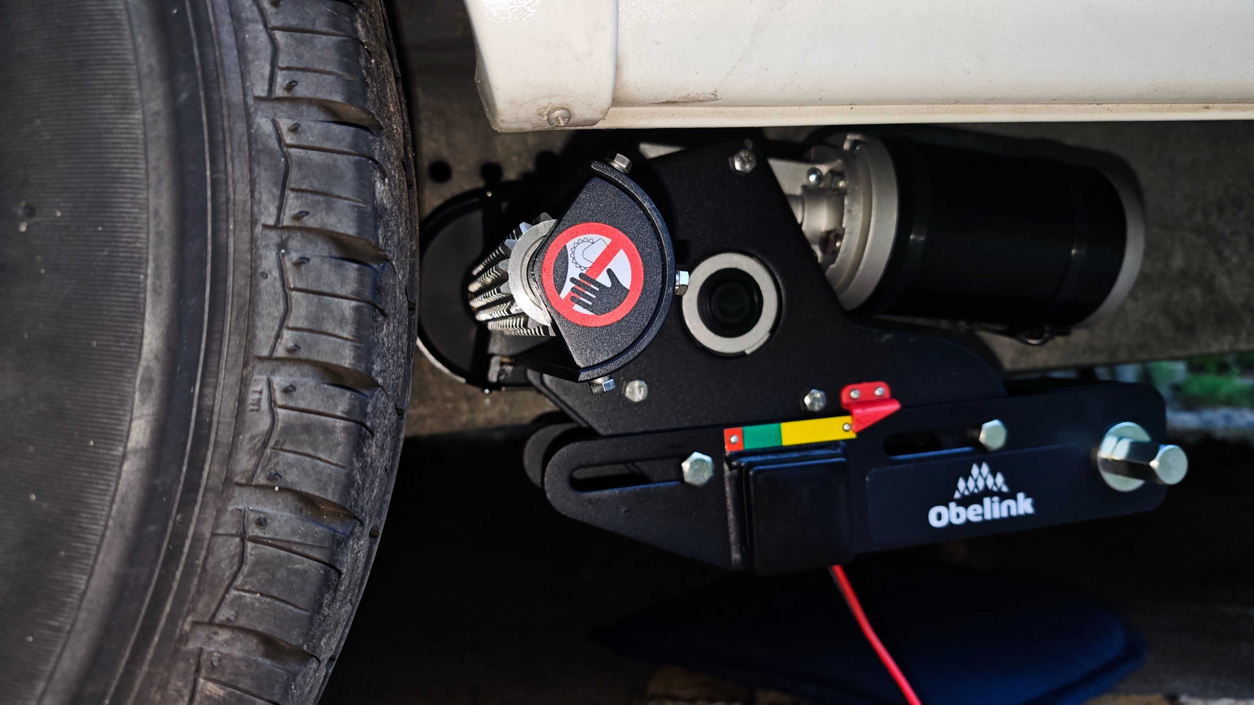 Il mover Obelink Prestige II ha un funzionamento semiautomatico. Ciò significa che i rulli del mover devono essere avvicinati manualmente alle ruote del veicolo. L'aggancio e lo sgancio dei rulli si effettua molto facilmente per mezzo dell'apposita manovella in dotazione.