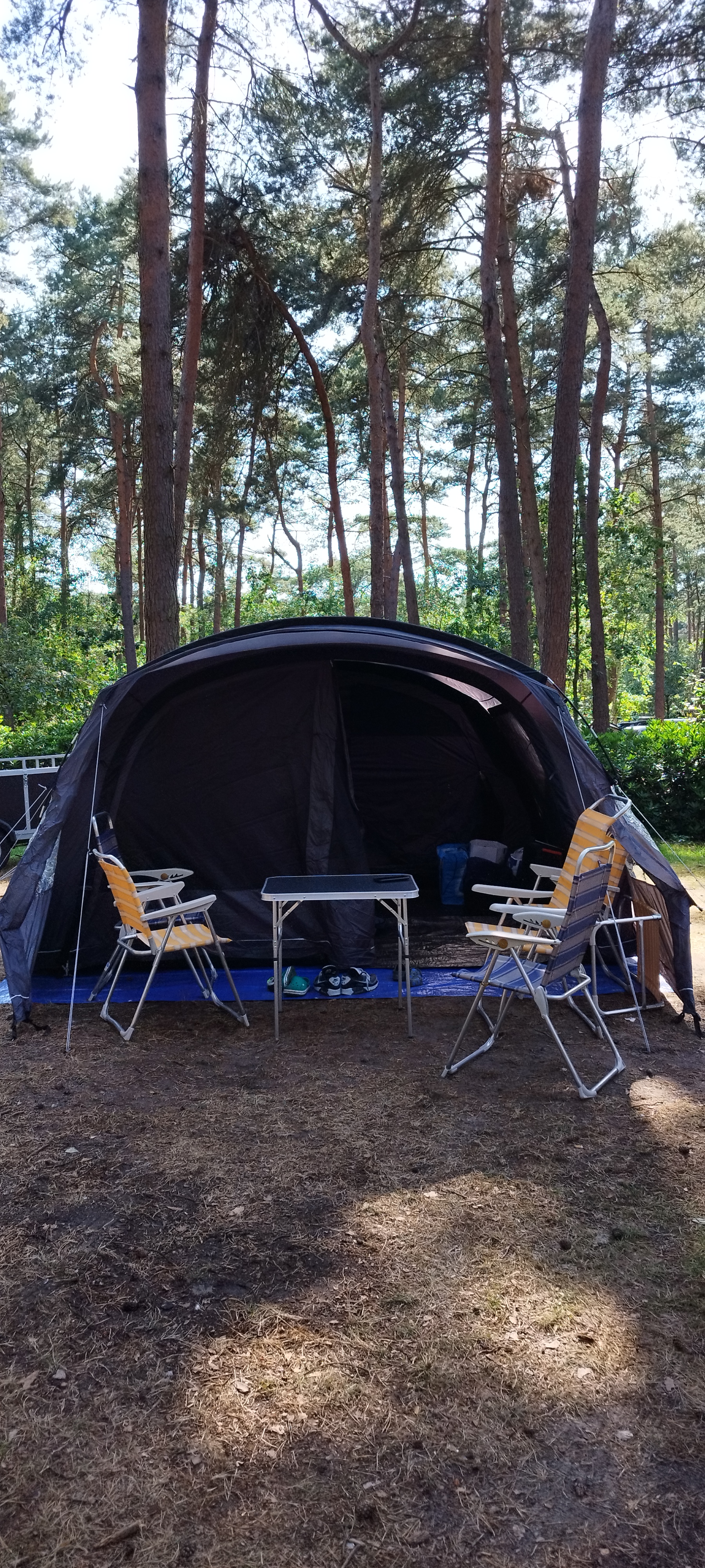La Primo 6 di Obelink ha tutto ciò che ti aspetteresti da moderna tenda a tunnel. È dotata di ampie finestre che la rendono molto luminosa e regalano una sensazione di spaziosità. Grazie ai pali piegati nella parte superiore le pareti laterali sono quasi verticali, cosa che permette di sfruttare in maniera più efficace lo spazio interno. La zona notte è realizzata in tessuto CoolDark che blocca il 99% della luce solare. Ciò non solo consente di dormire più a lungo, ma mantiene anche l'interno della tenda più fresco. La zona notte è composta da due cabine letto, ciascuna con una larghezza di 180 cm. La parete divisoria può eventualmente essere arrotolata verso l'alto se si preferisce dormire tutti insieme.