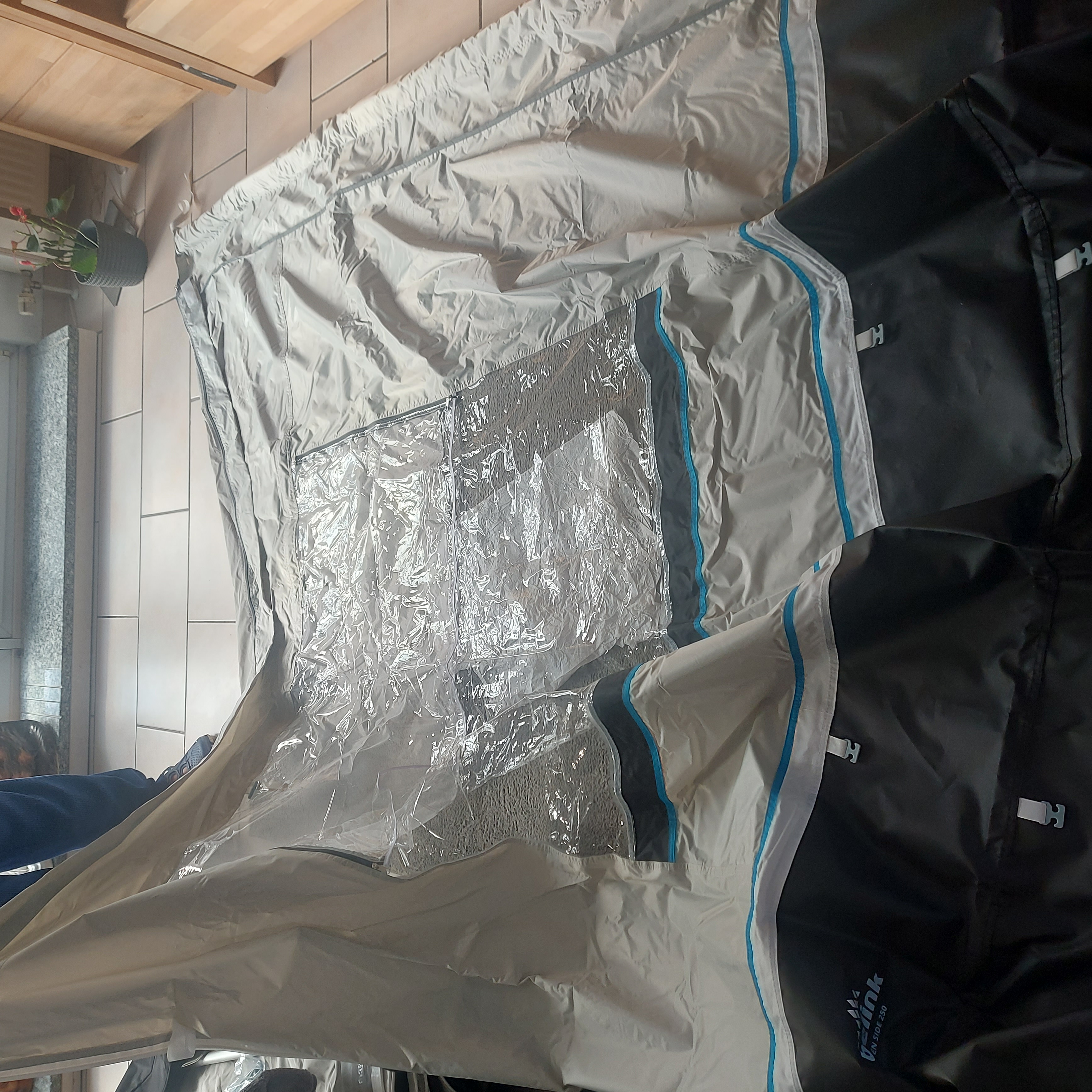 Se la tenda/veranda è dotata di una balza perimetrale doppia occorre piegare una balza verso l'interno e una verso l'esterno.