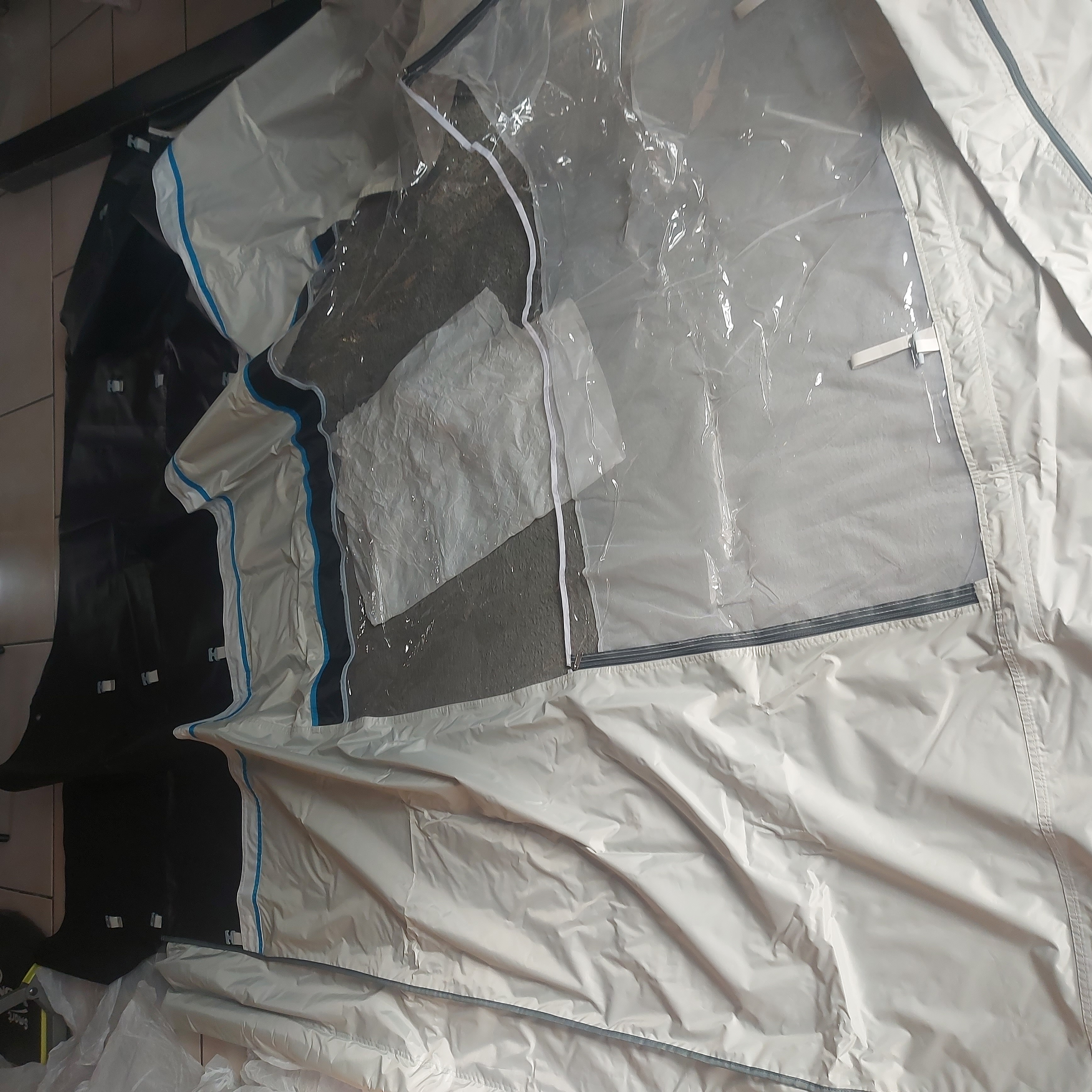 Le pareti laterali contenute in questo set sono dotate di una finestra con la metà superiore in zanzariera che assicura una ventilazione ottimale. La zanzariera può eventualmente essere coperta con una pellicola trasparente. Anche la parete frontale è dotata di un'apertura di ventilazione richiudibile.