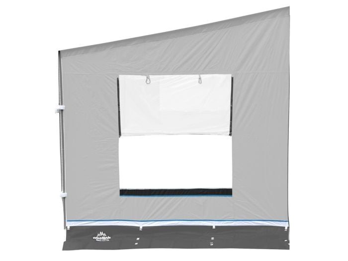 La parete laterale destra Obelink Queen Thule 1200 è una parete laterale adatta al lato destro dei tendalini a sacchetto Thule Omnistor 1200 con una profondità di 250 cm. La parete è realizzata in poliestere 300D e nella parte inferiore ha una balza perimetrale in PVC. La balza perimetrale assicura una lunga durata della parete e consente di pulire più facilmente la parte che viene a contatto col terreno. Questa parete è anche dotata di una finestra con la metà superiore in zanzariera. Per evitare l’ingresso della pioggia la parte in zanzariera è protetta da una copertura trasparente.