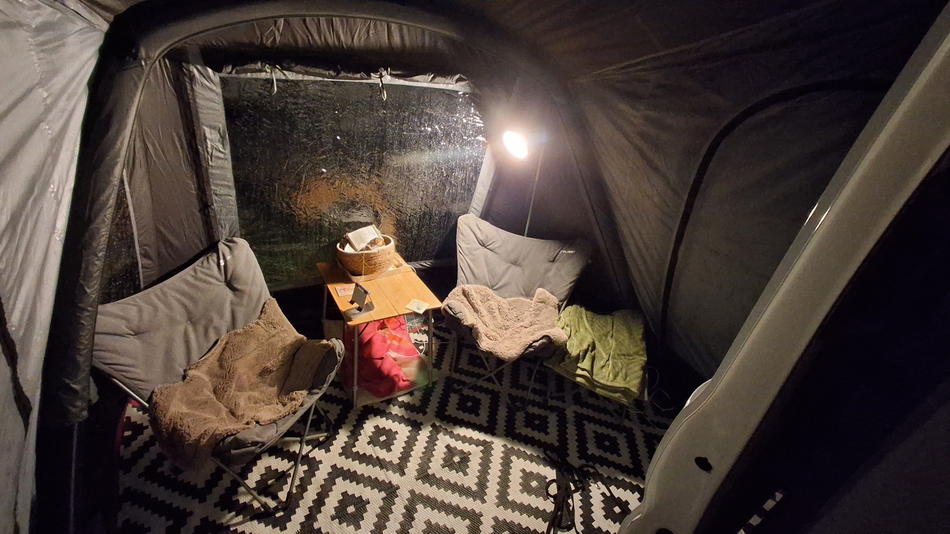 La tenda/veranda offre la possibilità di aggiungere un'estensione acquistabile separatamente per aumentare lo spazio di soggiorno.