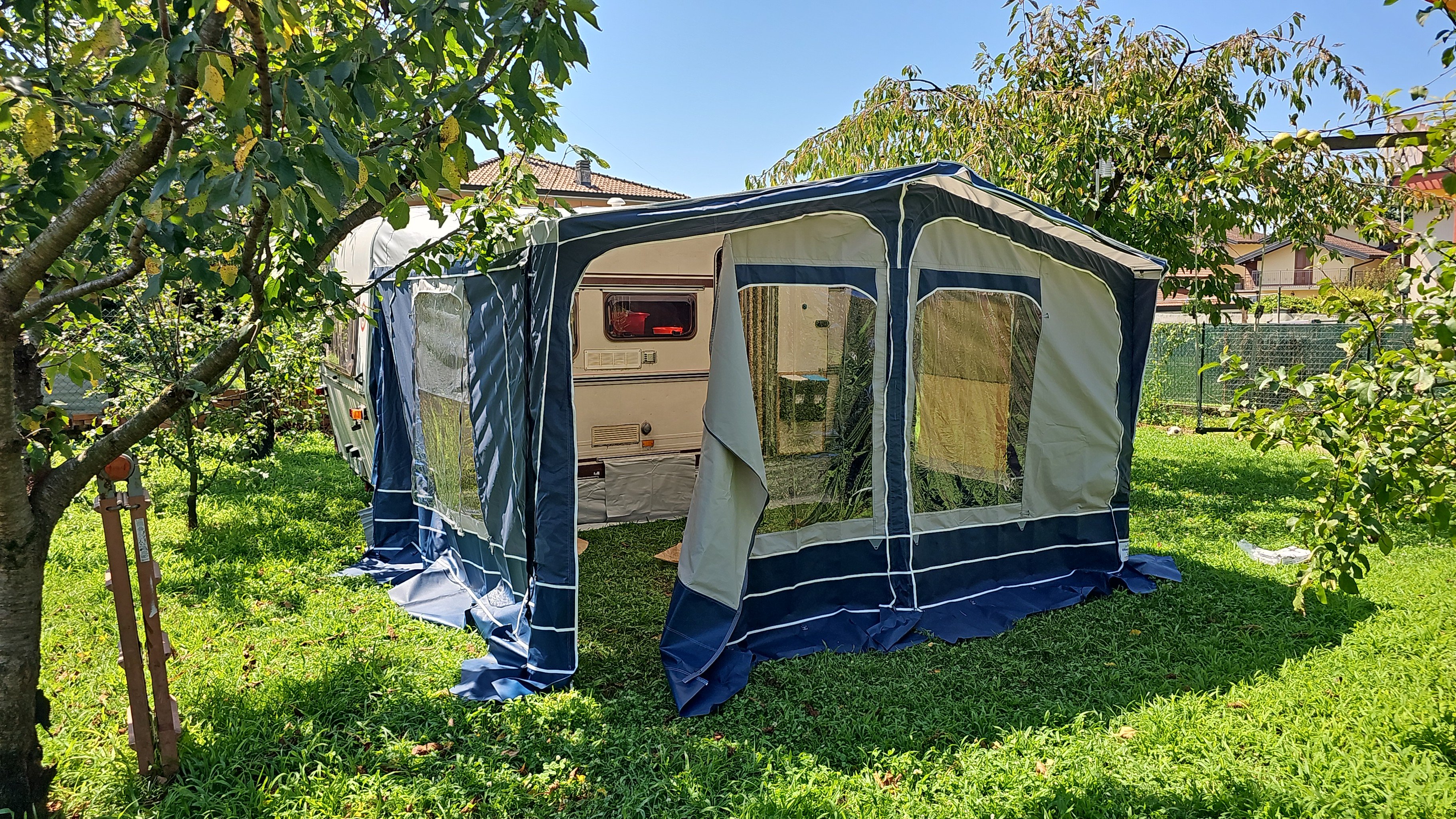La tenda/veranda offre la possibilità di aggiungere un'estensione acquistabile separatamente per aumentare lo spazio di soggiorno.