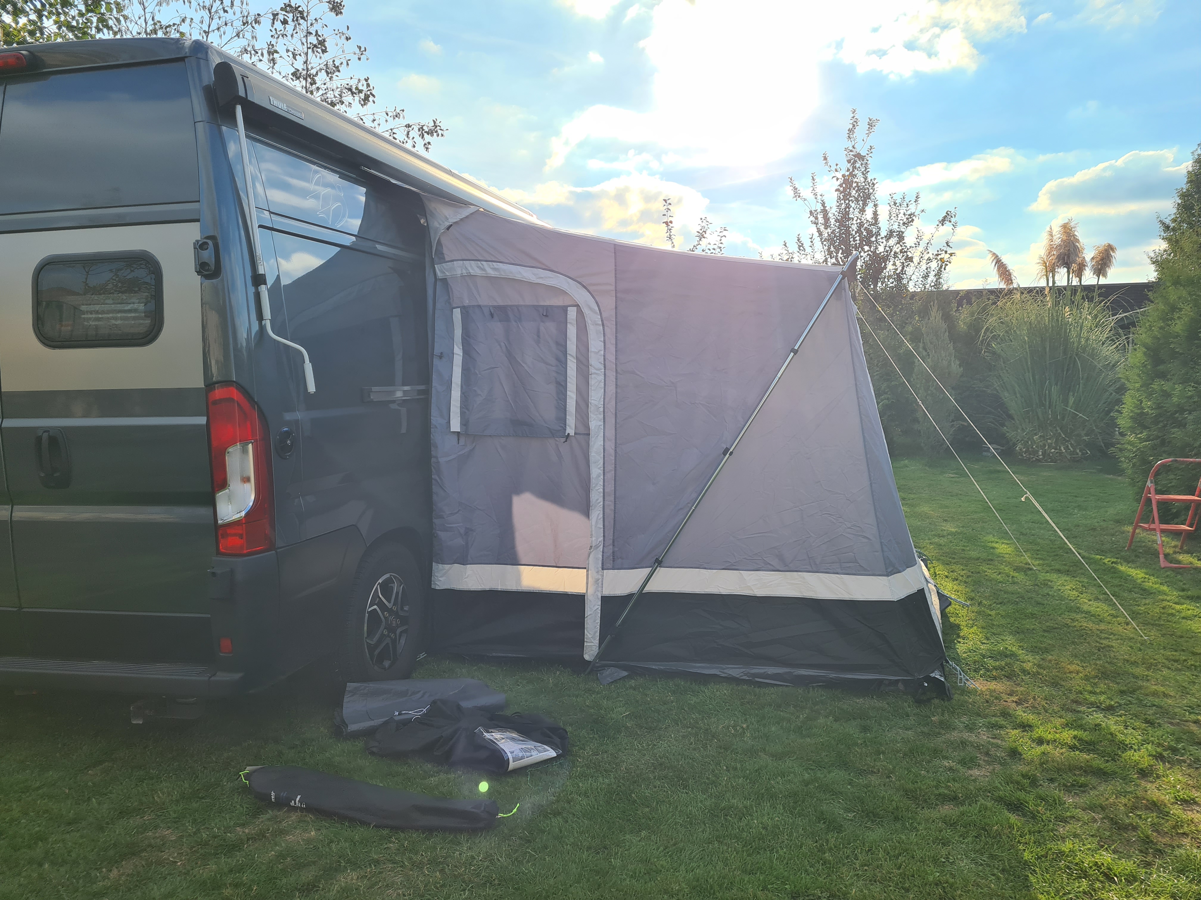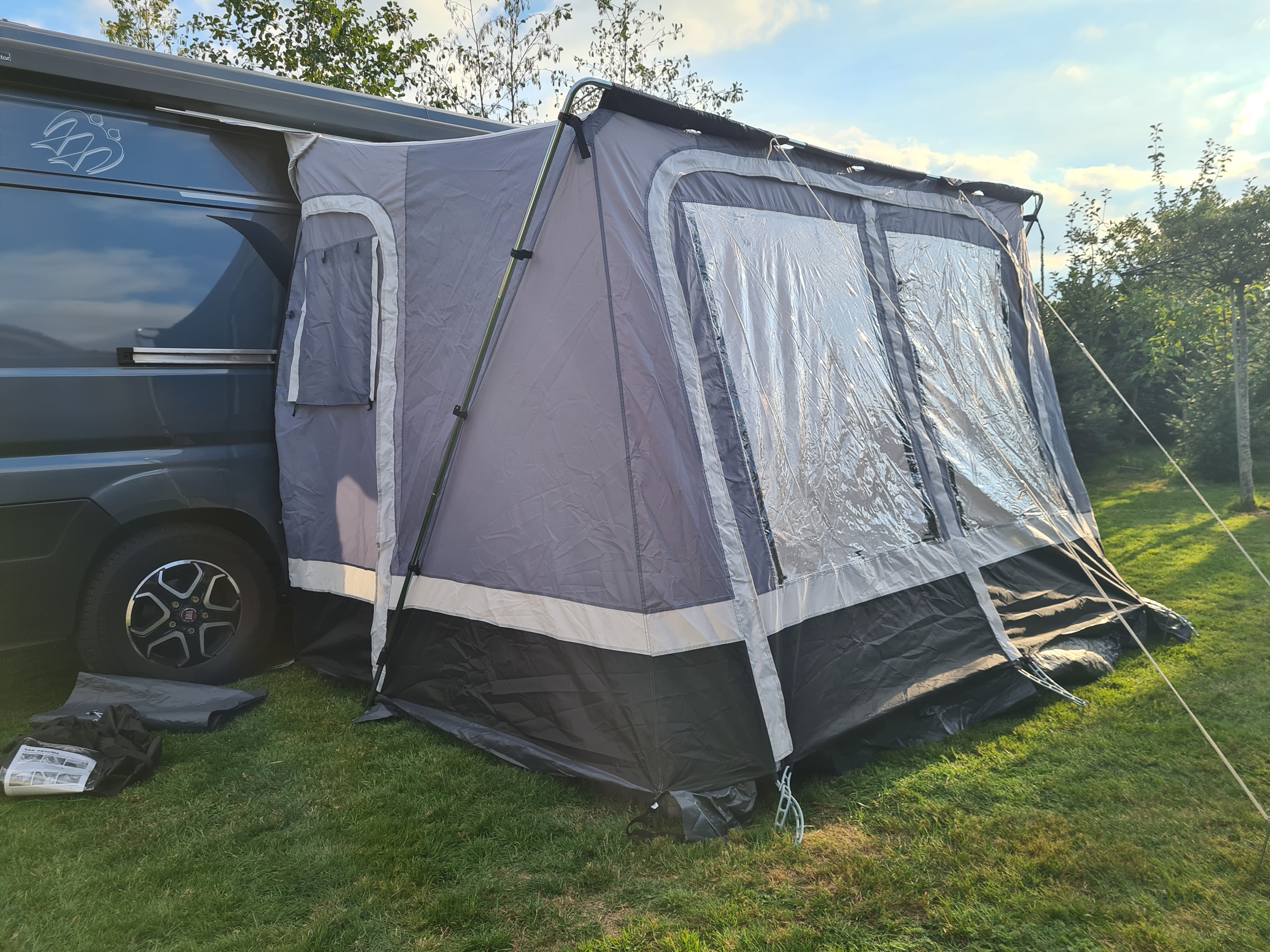 Sacca per trasporto, Picchetti, Corde di tensione, Grembiule antivento, Copriruota, Telo pavimento