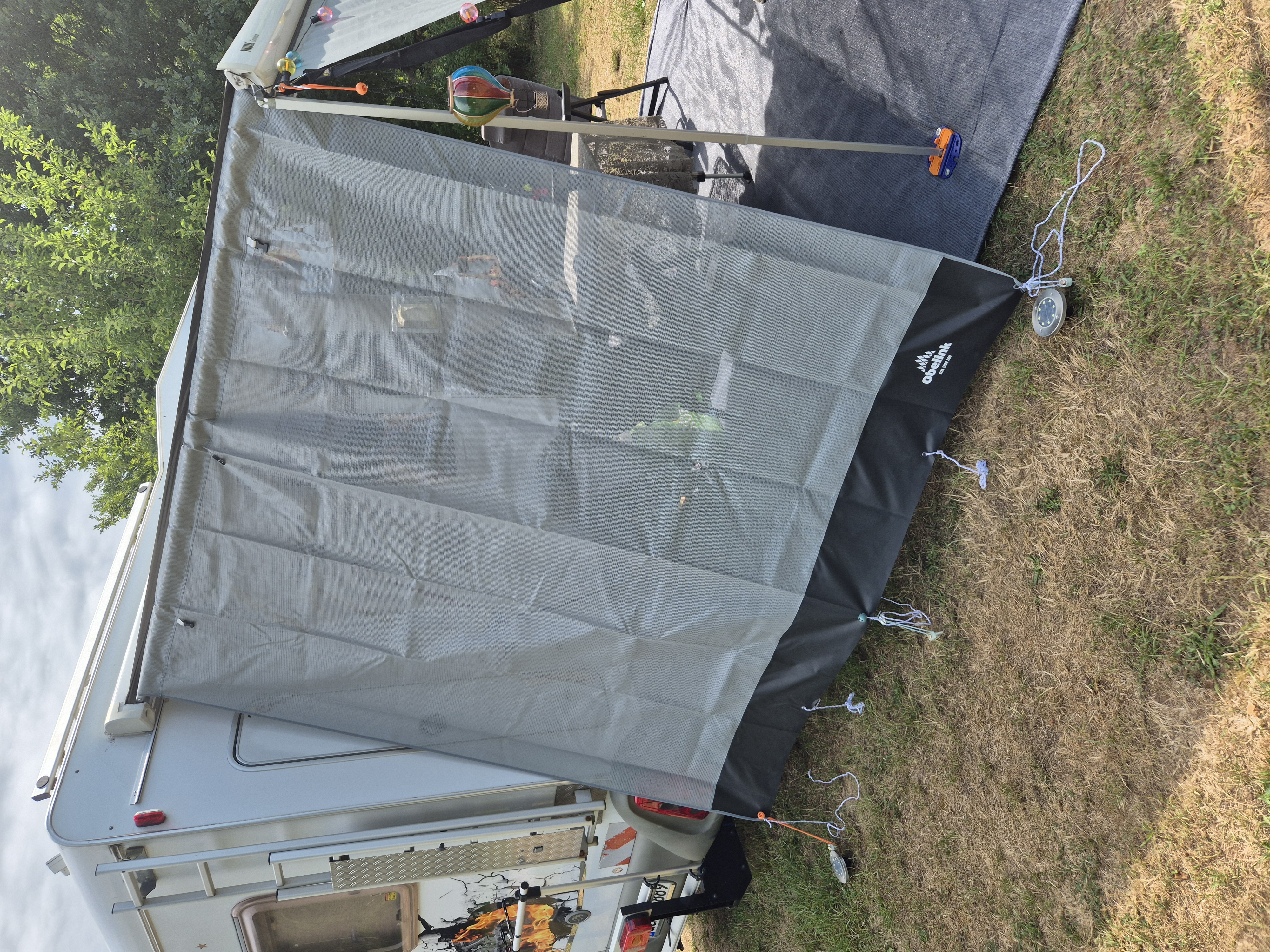 La parete Obelink Sol Side Deluxe viene fornita completa del rafter Obelink Apex ed è compatibile con la maggior parte dei modelli di tendalini con una profondità di 250 cm, come il Thule Omnistor 6300, 5200 e 1200, oltre ai Fiamma F80S, F45S e Caravanstore XL. La parete laterale Sol Side è adatta anche a diversi modelli di tendalini più vecchi. Controlla le caratteristiche tecniche di questo prodotto per verificare la compatibilità con il tuo tendalino.