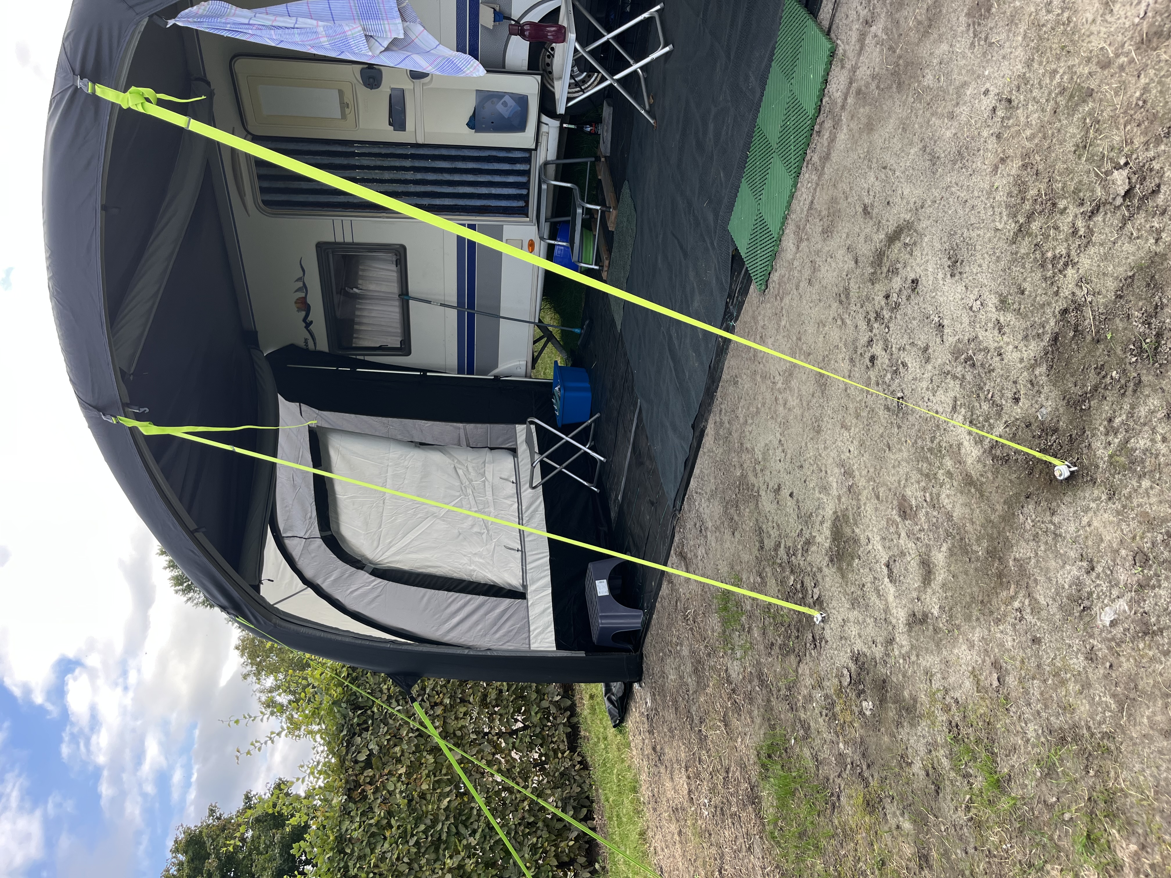 Entrambe le pareti laterali sono dotate di cerniere che permettono di fissarle facilmente al tendalino. Le ampie finestre regalano una sensazione di spaziosità e consentono di ammirare il paesaggio circostante. Se si desidera avere più privacy basta chiudere le finestre per mezzo degli oscuranti interni. Per una perfetta aderenza alla parete del caravan entrambe le pareti laterali sono dotate di un bordo in schiuma che può essere premuto contro la parete del veicolo per mezzo dei pali di pressione acquistabili separatamente.