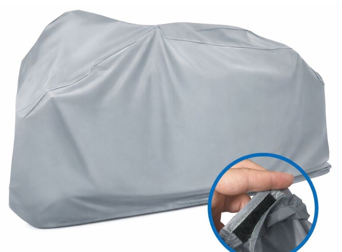 Il telo copribici Obelink è dotato di chiusura con velcro ed è completamente impermeabile. Permette di coprire una sola bicicletta.