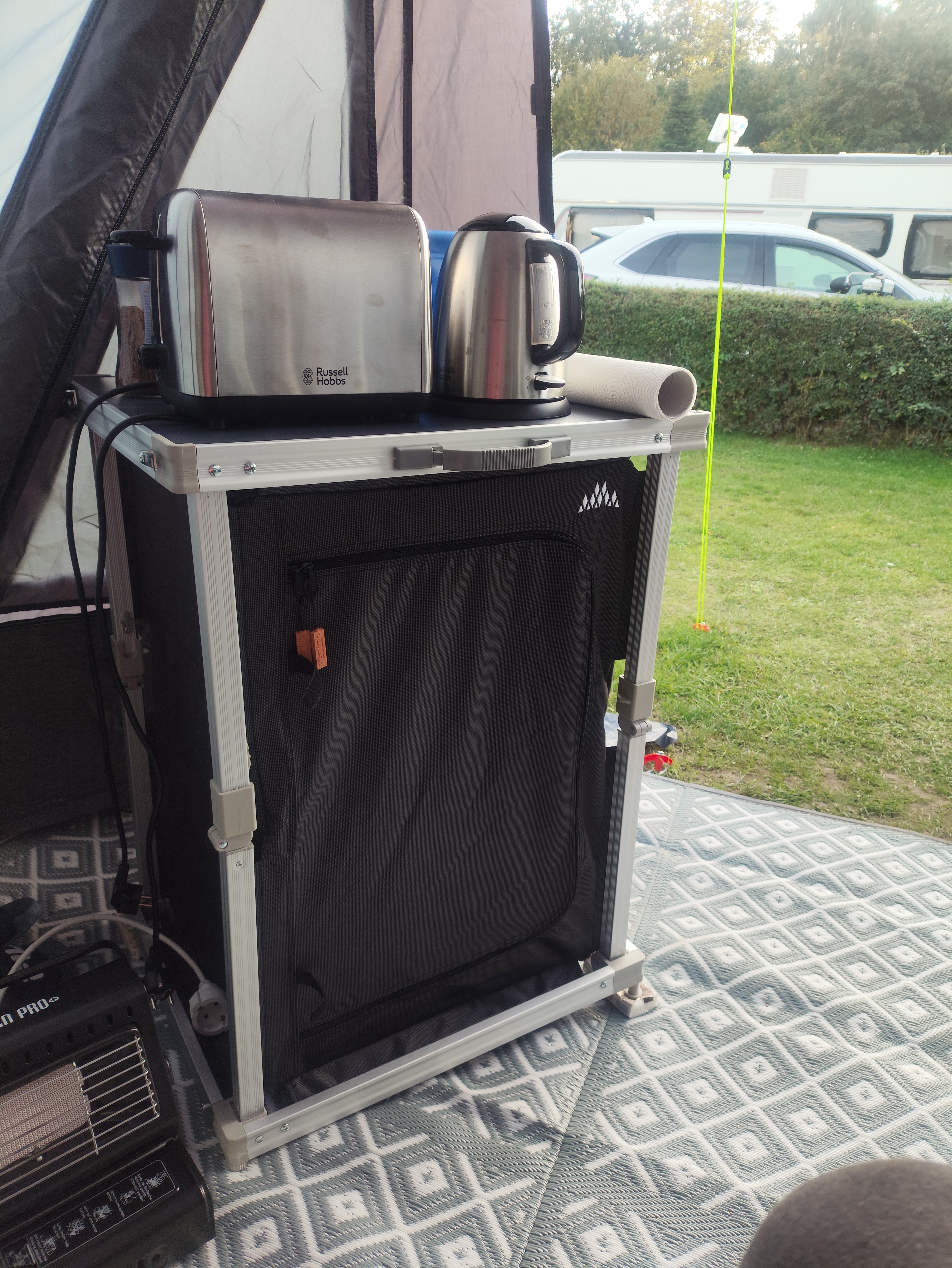 L'Obelink Veneto Quick è un mobiletto da campeggio spazioso e resistente dotato di piano superiore in MDF.