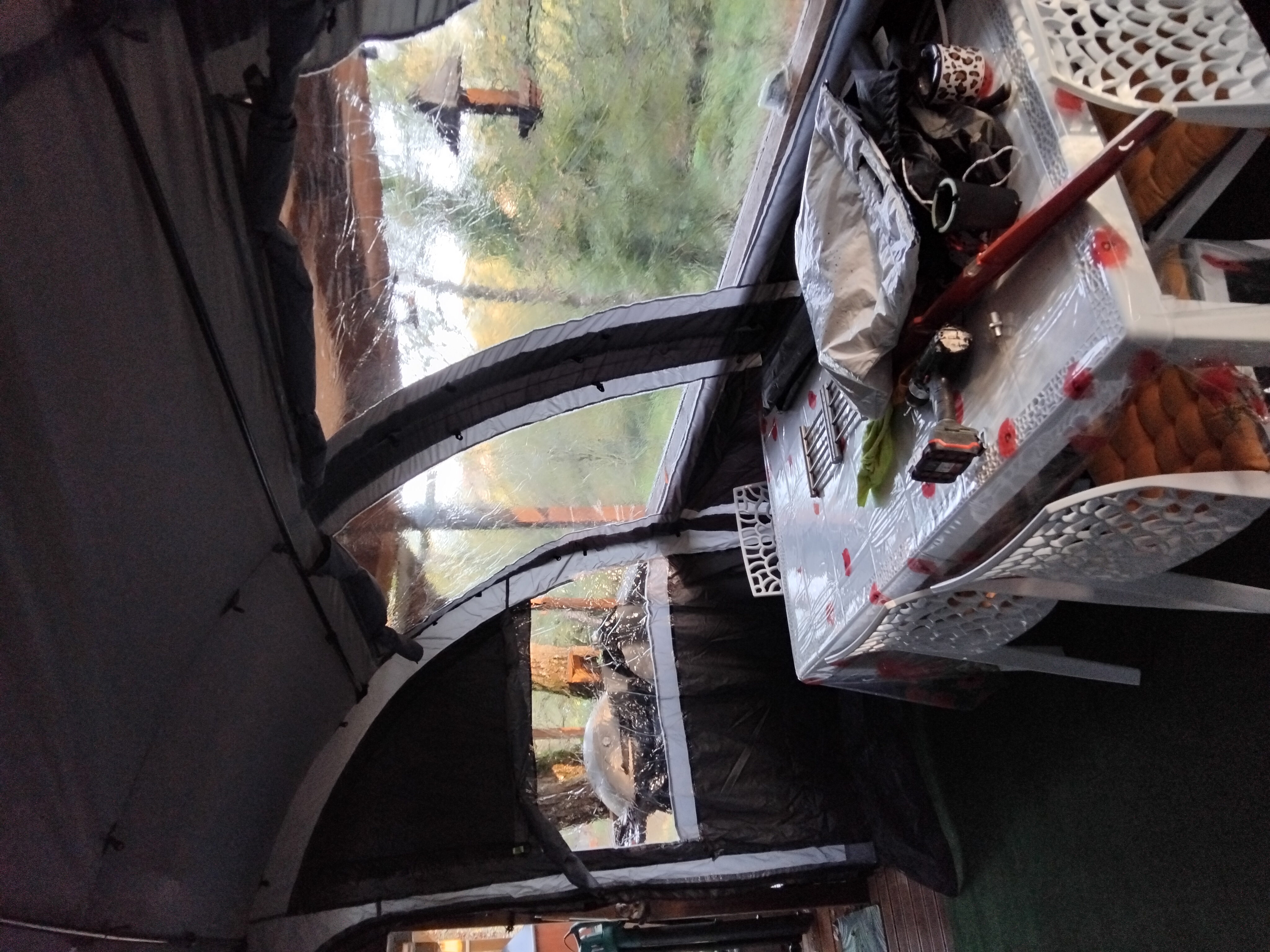Questa tenda, veranda o tendalino ha una struttura costituita da camere d'aria gonfiabili.