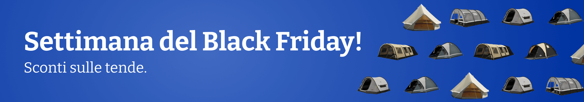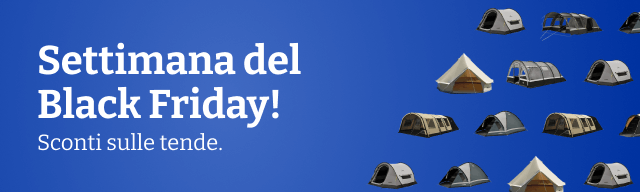 Durante la settimana del Black Friday non trovi solo tende da campeggio a prezzi super convenienti, ma anche accessori per caravan e camper, verande e tendalini e mobili da campeggio. Tieni d'occhio il nostro sito e non perderti le nostre offerte!