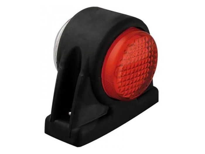 Questa luce è realizzata in plastica e può essere alimentata sia a 12 che a 24 V. Da un lato emette luce rossa e dall'altro bianca. Le dimensioni sono 101 x 82 x 66 mm e la distanza tra i fori di montaggio è di 70 mm.