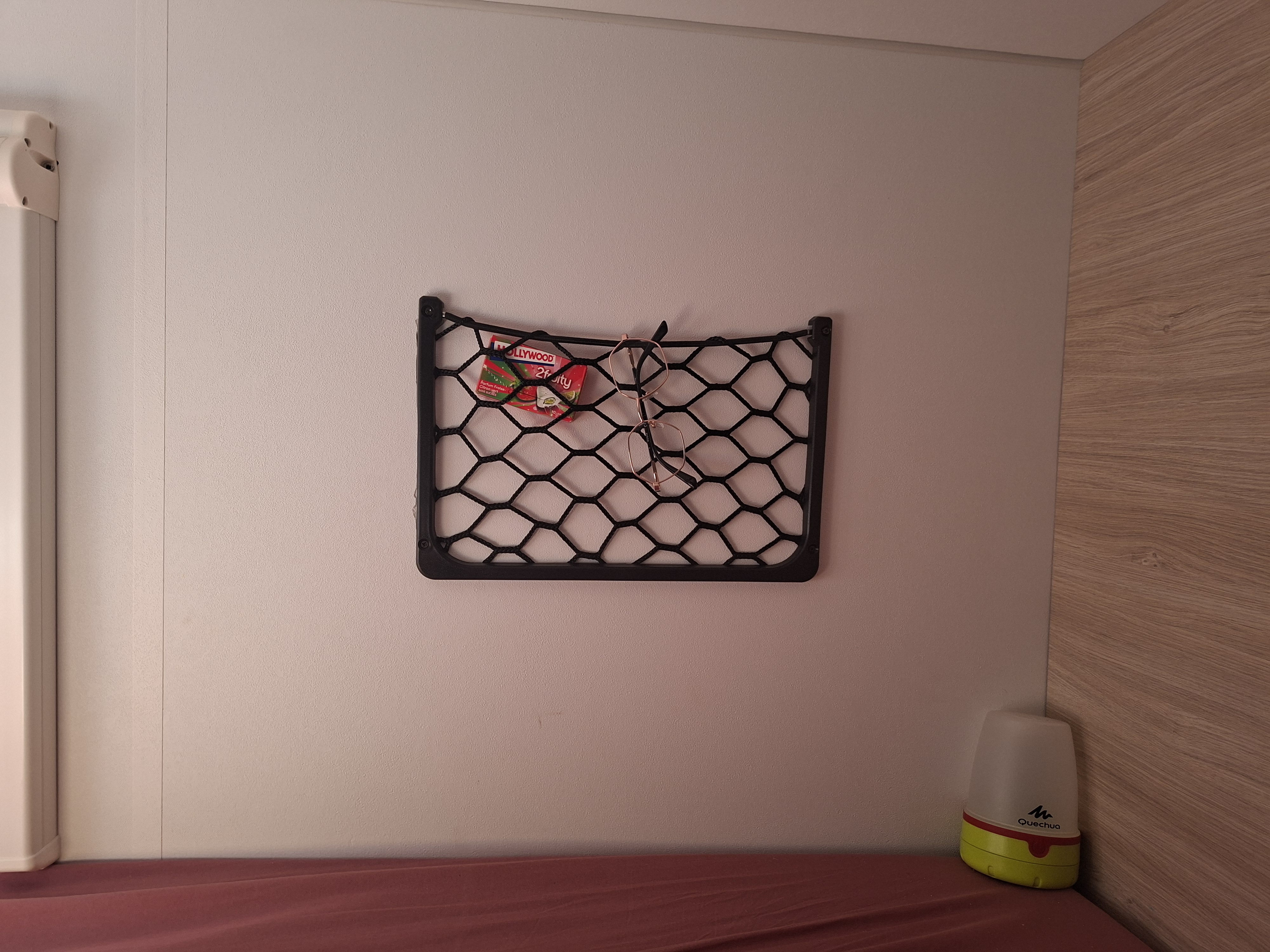 La rete portaoggetti elastica ProPlus NS-10 può essere fissata facilmente alla parete del camper o della roulotte. Viene fornita completa di viti.