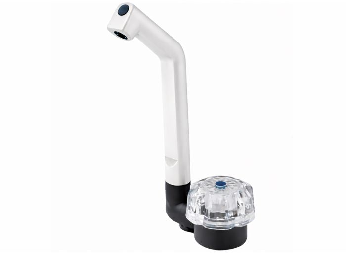 Il rubinetto per acqua fredda Reich De Luxe è l'ideale per il caravan, il camper o la barca ed è adatto a lavelli con foro di montaggio da 20 mm.