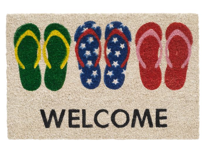 Lo zerbino infradito Ruco 147 Print è realizzato con le fibre esterne della noce di cocco ed ed è anti- muffa, attutisce i rumori e non imputridisce.