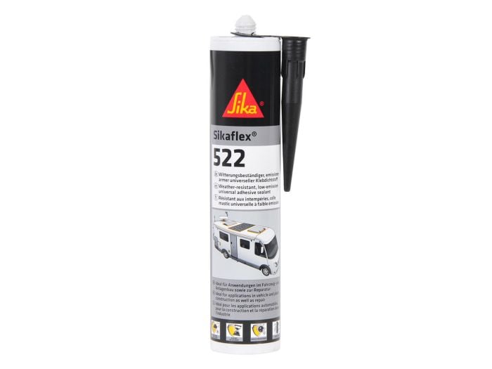 Il Sikaflex 522 indurisce con l'esposizione all'umidità atmosferica ed è adatto per il montaggio di oblò da tetto, lucernari, sportelli di servizio, pannelli solari, tendalini e parabole satellitari.