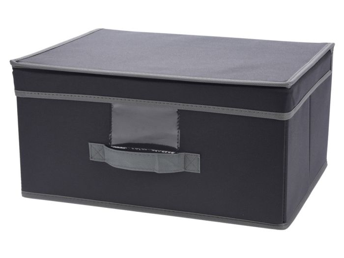 Grazie al coperchio gli oggetti vengono protetti dalla polvere, inoltre la scatola è facile da prendere anche se si trova sopra o dietro un armadio grazie alla comoda maniglia. La taschina trasparente può essere utilizzata per inserirvi un cartellino con la descrizione del contenuto.