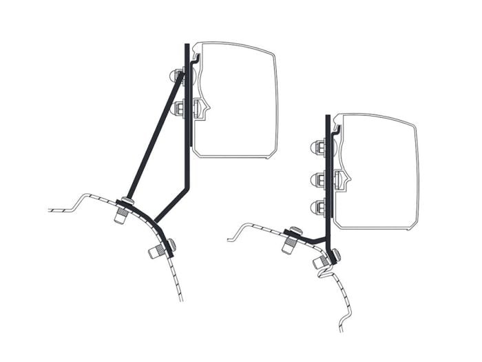 L’adattatore Thule 3200 Custom V710/Transporter T7 permette di montare il tendalino Thule Omnistor 3200 con una lunghezza di 270 o 300 cm su un Volkswagen T7 o su un Ford Transit Custom V710. Il set è composto da 2 staffe.